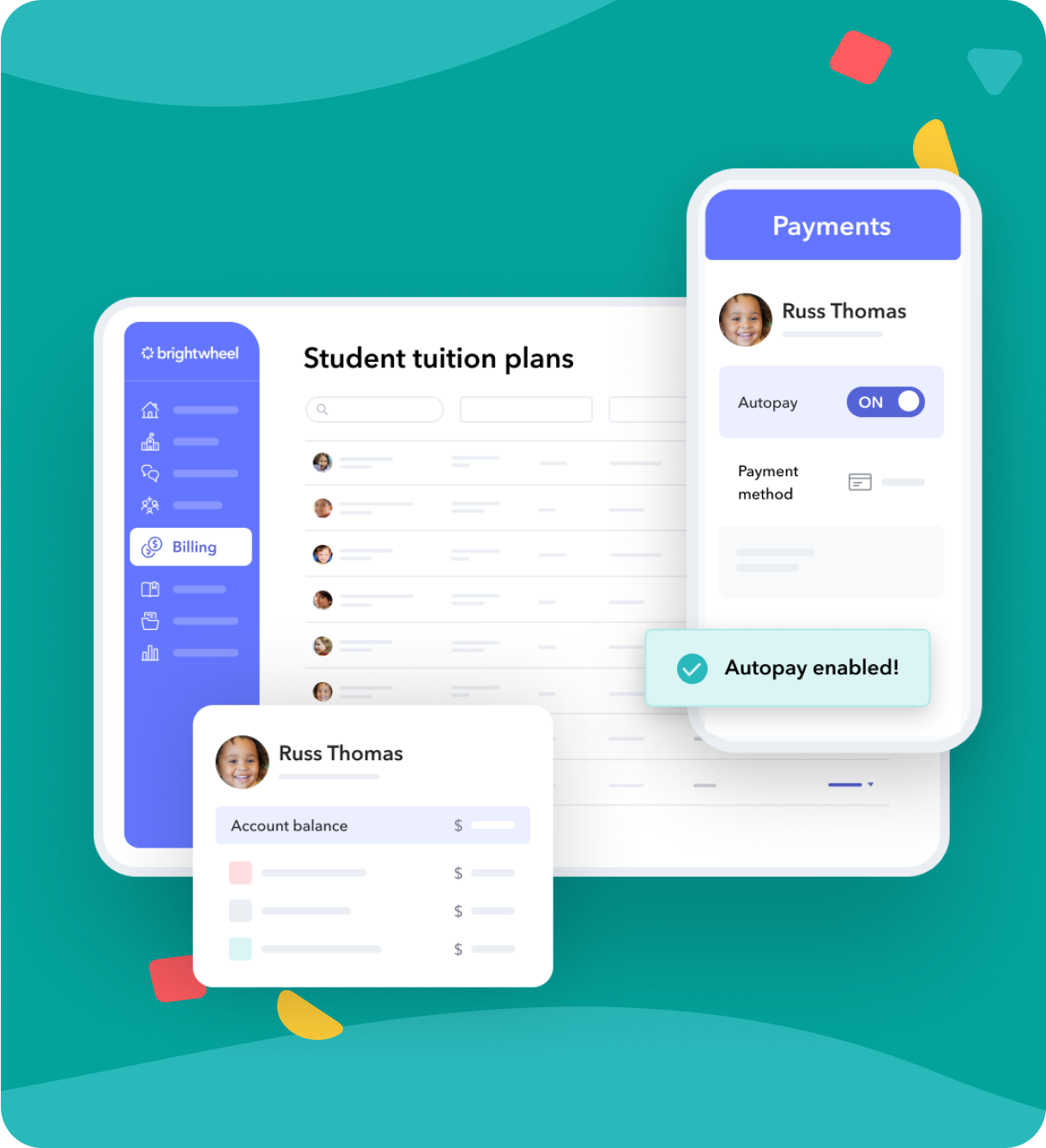 Manage enrollment, billing, payroll, communication, and business from the brightwheel app.