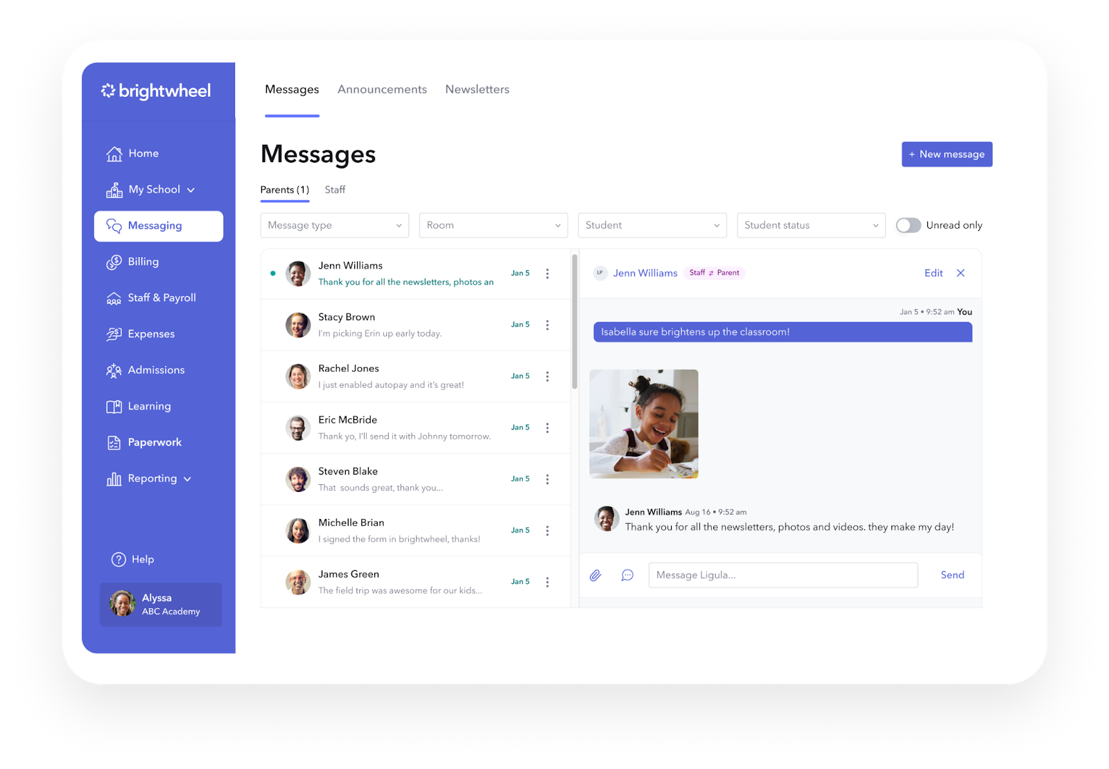 Crystal had seen the downsides of paper handouts and insecure parent communication in past roles, and understood these issues deeply, both as an administrator and a parent. This time, she wanted something better. “I have told the parents that all communication needs to be through the brightwheel app and not through my text message or Facebook it keeps it all in one place,” Crystal emphasizes. And importantly, it helped Crystal set healthy boundaries from the start. “I’ve told them I won’t necessarily respond after hours… I’ve got to have me time and family time too.”
